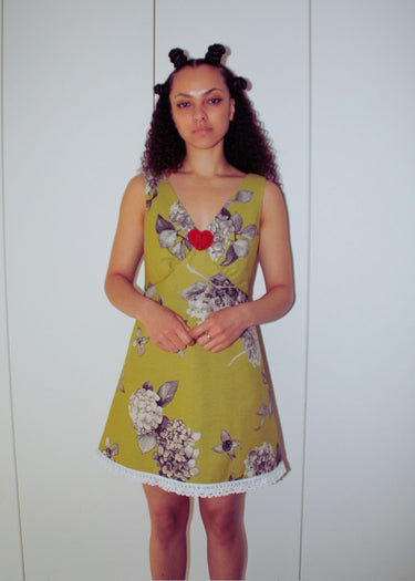 This 1960s Mod Aline mini dress is made from vintage style cotton canvas.