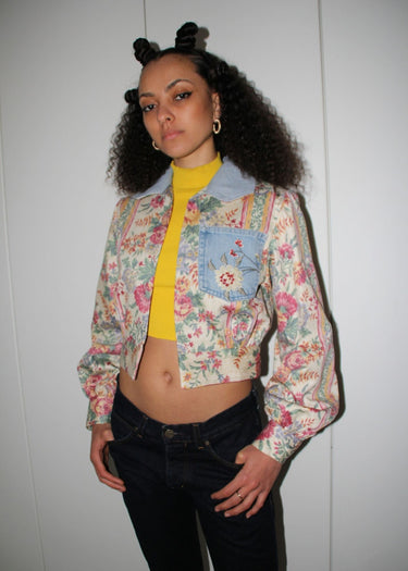 Vintage Pastel Floral Upcycled Denim Jacket